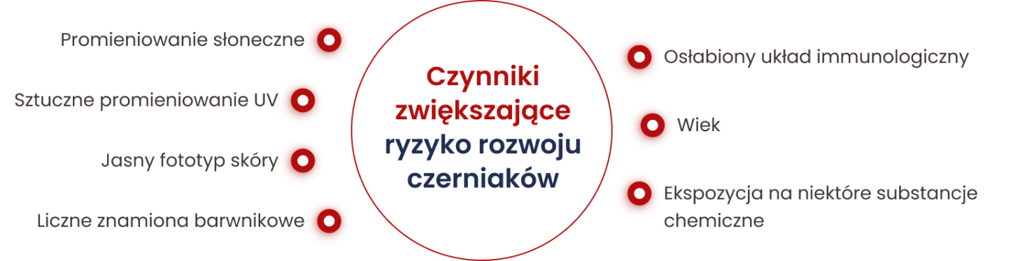 Czerniak rozwija się z komórek barwnikowych skóry, które wytwarzają melaninę w odpowiedzi na promieniowanie UV. Choć ma działanie ochronne, to długotrwała ekspozycja na promieniowanie UVA i UVB może uszkadzać te komórki, prowadząc do rozwoju nowotworu, zwłaszcza u osób szczególnie narażonych.